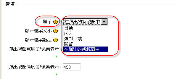 我以前常把課程資源設定為 pop-up,學生可輪流看資源視窗與 course page;如果有 pdf 等檔案,也可以不用 embed 在網頁裡,讓學生直接下載。現在這些選項好像都變成要由 site admin 增設。不知能否請貴中心設定。