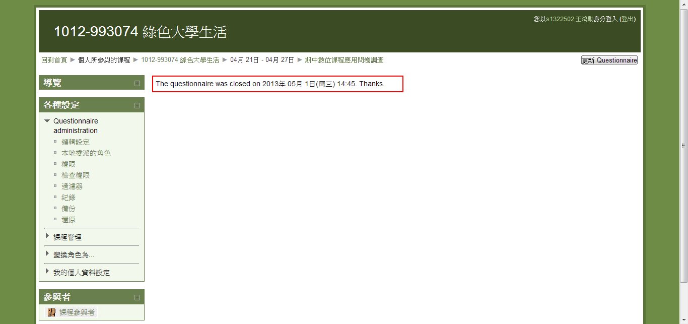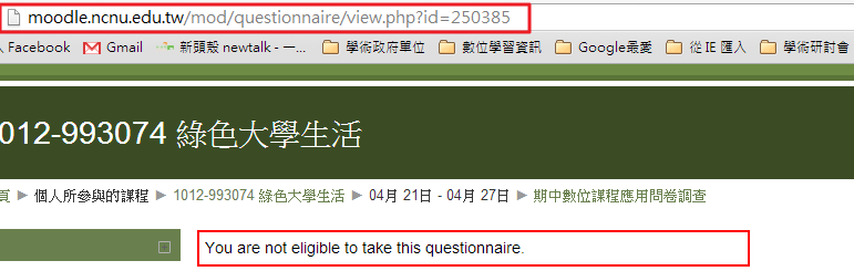 問題原因可能是: 你延用去年課程的問卷調查, 而且是 Public 模式,